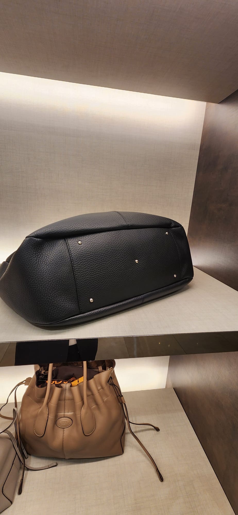 Logo Detail: Oval leather patch on the front with an embossed Tod’s logo.